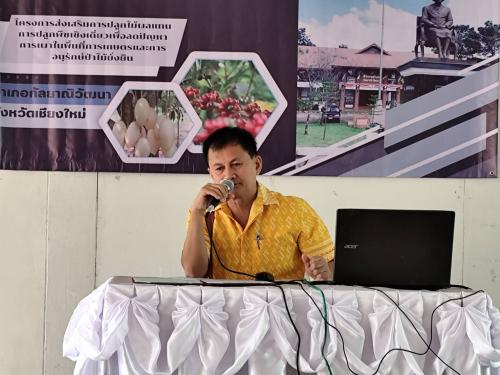 ในการนี้นางสาวศิริลักษณ์ นันตา นักวิชาการพัฒนาชุมชนชำนาญการ รักษาราชการแทนพัฒนาการอำเภอกัลยาณิวัฒนา มอบหมายให้นางสาวขนิษฐา สนธิคุณ นักวิชาการพัฒนาชุมชนปฏิบัติการ เข้าร่วมโครงการและร่วมเป็นวิทยากรบรรยายในหัวข้อเรื่อง กิจกรรมส่งเสริมการแปรรูปและพัฒนาผลิตภัณฑ์มะม่วง เพิ่มรายได้และลดค่าใช้จ่ายครัวเรือน ทั้งนี้ผลคาดว่าเกษตรกรได้รับความรู้จากการถ่ายทอดเทคโนโลยีด้านการผลิตไม้ผล ปรับเปลี่ยนพฤติกรรมจากการปลูกพืชเชิงเดี่ยวให้เป็นไม้ผลเช่นมะม่วงหรือกาแฟ และเกษตรกรสามารถนำความรู้ไปปฏิบัติให้ได้จริง และเปลี่ยนพื้นที่พืชเชิงเดี่ยวเป็นไม้ผล พร้อมกับการอนุรักษ์ป่าไปในตัว